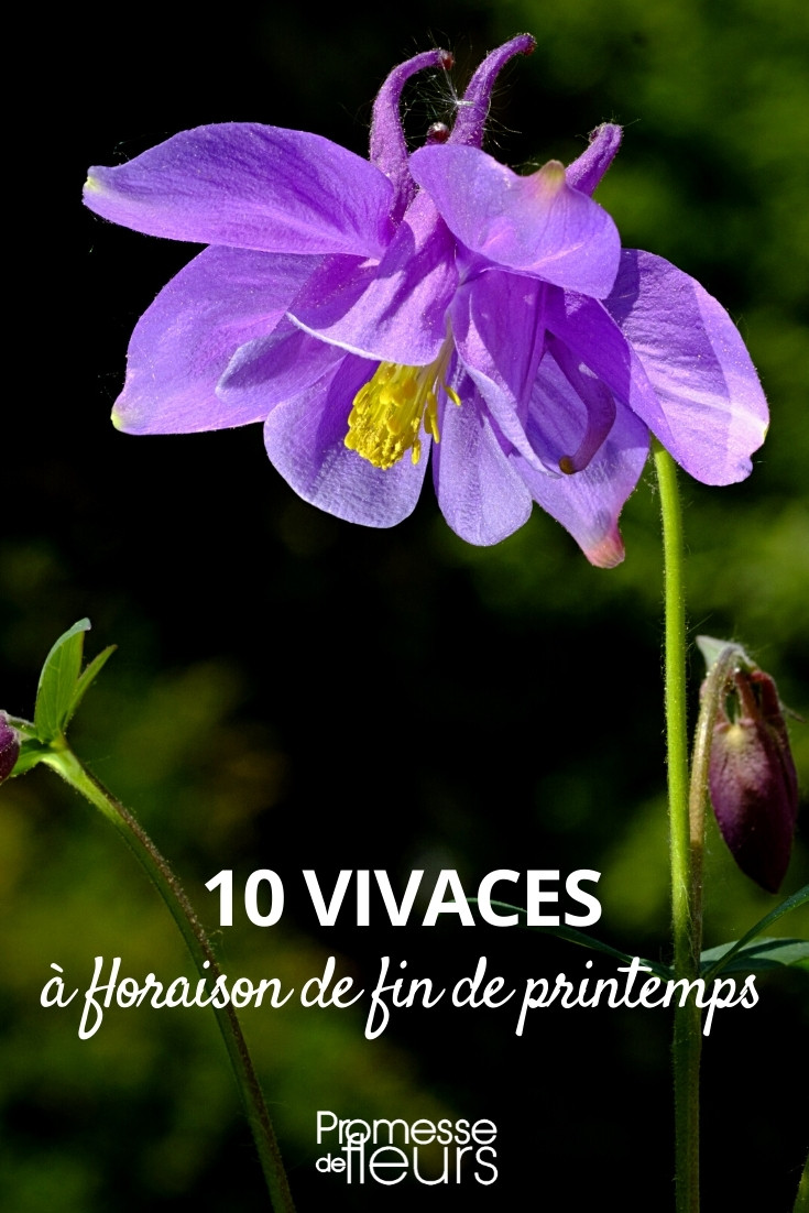 Certaines plantes vivaces attendent la fin du printemps pour fleurir, une fois que le temps s’est suffisamment réchauffé. Les fleurs que nous vous présentons ici fleurissent habituellement en mai juin (parfois dès avril ou jusqu’en juillet, suivant les variétés), mais cela dépend aussi de l’endroit où vous habitez : en région froide, ces plantes fleuriront probablement un peu plus tard, en début d’été, tandis qu’en région chaude, elles peuvent fleurir plus tôt au printemps. Nous vous présentons dans cette fiche les plus belles vivaces qui fleurissent en fin de printemps et quelques conseils pour réussir leur culture. N’hésitez pas à les associer entre elles pour composer des massifs colorés. Vous pouvez aussi les planter aux côtés de vivaces au feuillage décoratif, comme les fougères, graminées, hostas…