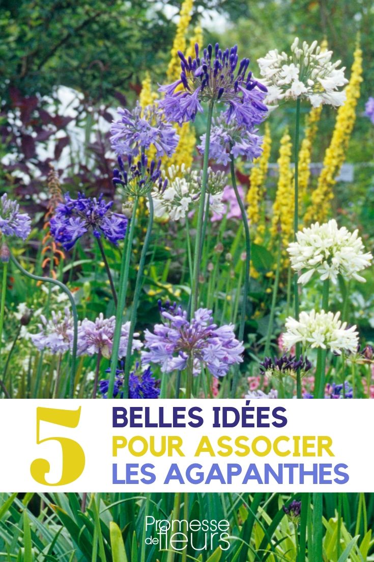 Si vous optez pour une ambiance “Côte ouest”, du littoral Atlantique, associez vos agapanthes aux pins maritimes, aux hortensias, aux poivriers des moines, aux bruyères, aux cheveux d’ange, aux genêts à balais et aux Sedum spectabile. Les teintes de bleus, roses, blancs, gris et dorés sont idéales.
