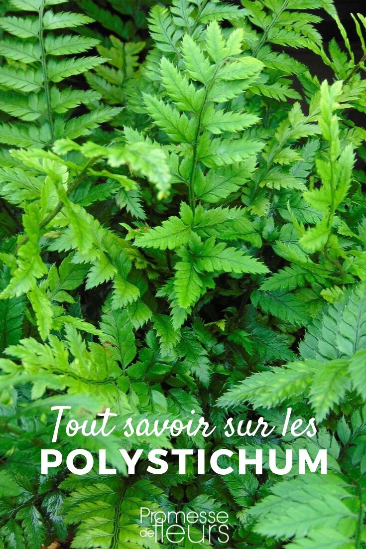 - Les Polystichum sont des fougères à belles frondes vert foncé et brillantes, finement découpées !